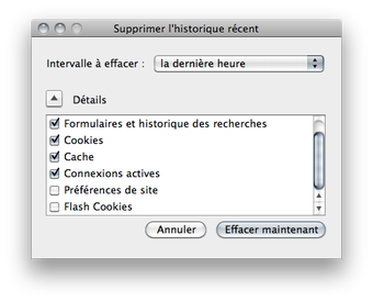 Vous pouvez configurer BetterPrivacy pour effacer les Cookies à chaque fermeture ou à chaque démarrage de l'ordinateur, ou ajouter un nouvel élément au menu de suppression de l'historique du navigateur.