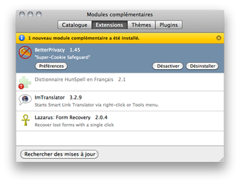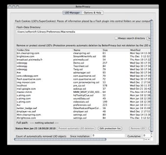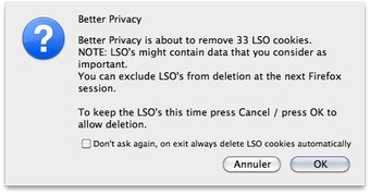 BetterPrivacy est une extension pour Firefox qui permet de se protéger des cookies Flash et des "Super-Cookies" en les éliminant automatiquement.